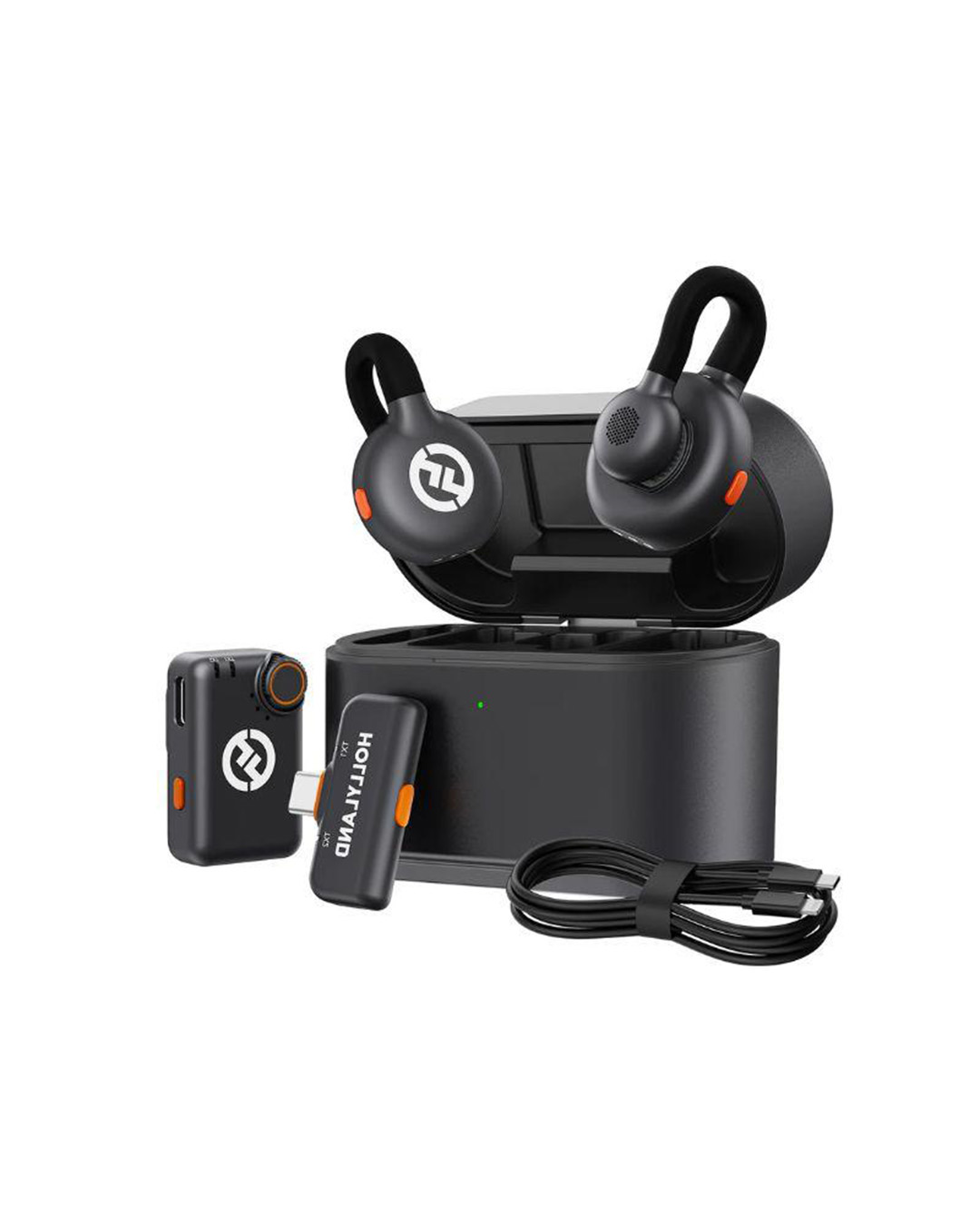 O Microfone Sem Fio Hollyland Lark M2S é ideal para gravar até duas pessoas em aplicações de jornalismo móvel ou criação de conteúdo. Inclui dois transmissores com microfones omnidirecionais integrados, um receptor USB-C, um receptor para câmera, e um estojo de carregamento para maior praticidade.