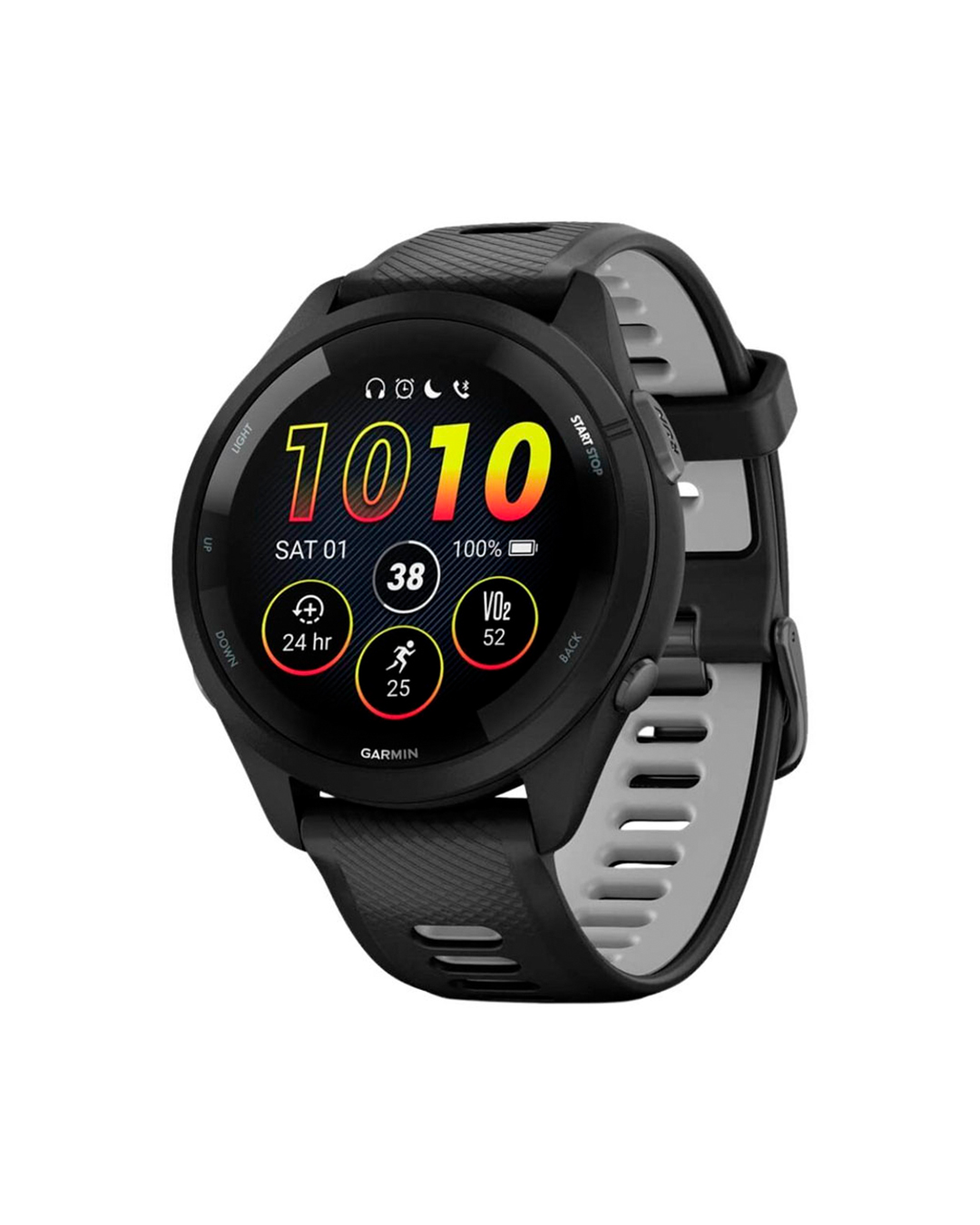 - Relógio Garmin Forerunner 265 Music na cor Black/Powder Gray.